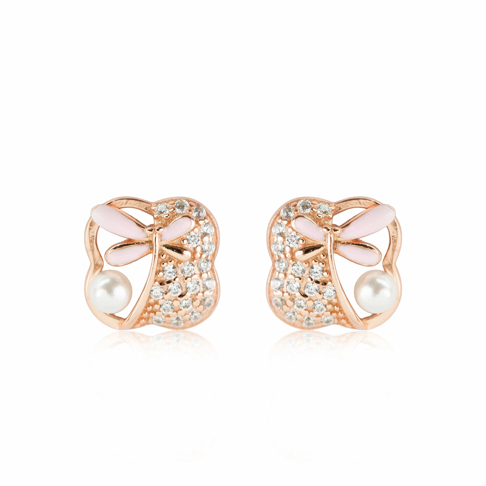 Meet Aurellia, an elegant pair of dragonfly-inspired earrings crafted with sparkling crystals, soft pink enamel wings, and a luxurious pearl accent. The rose-gold finish adds a graceful charm, while the design pairs beautifully with your collection of silver earrings for women, earrings for women in silver, or your favourite 925 silver earrings. Thoughtfully crafted for women who love delicate detailing, these earrings complement every style, from casual elegance to festive outfits.