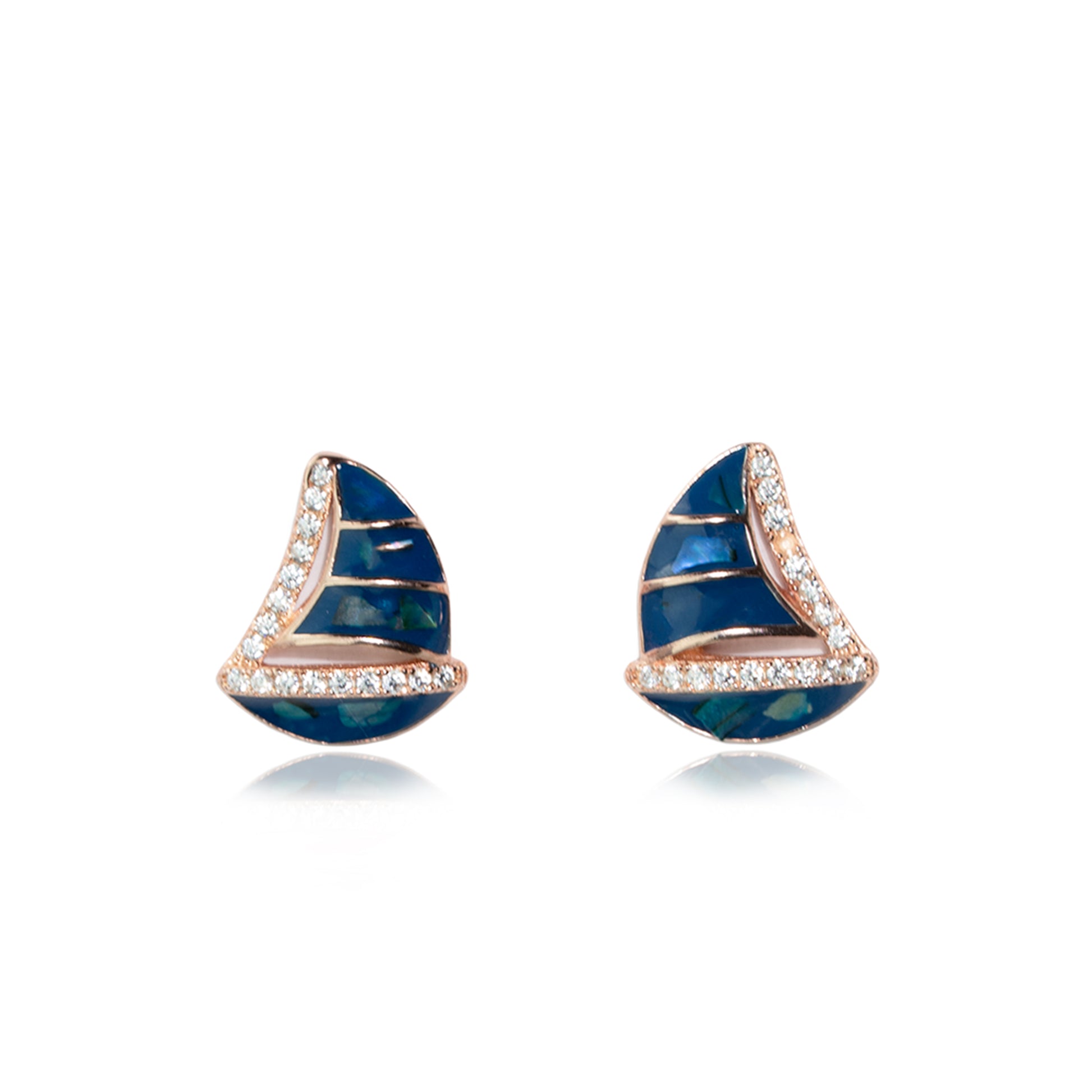 Set sail in style with the Azure Voyage Silver Earrings, featuring exquisite blue enamel sails outlined in shimmering cubic zirconia. Crafted in 925 sterling silver with a rose gold finish, these earrings capture the calm beauty of the ocean. The vibrant blue tones contrast perfectly with the delicate sparkle, making them ideal for both casual chic and elegant evenings. Lightweight and artfully designed, they reflect craftsmanship and modern charm in every detail.