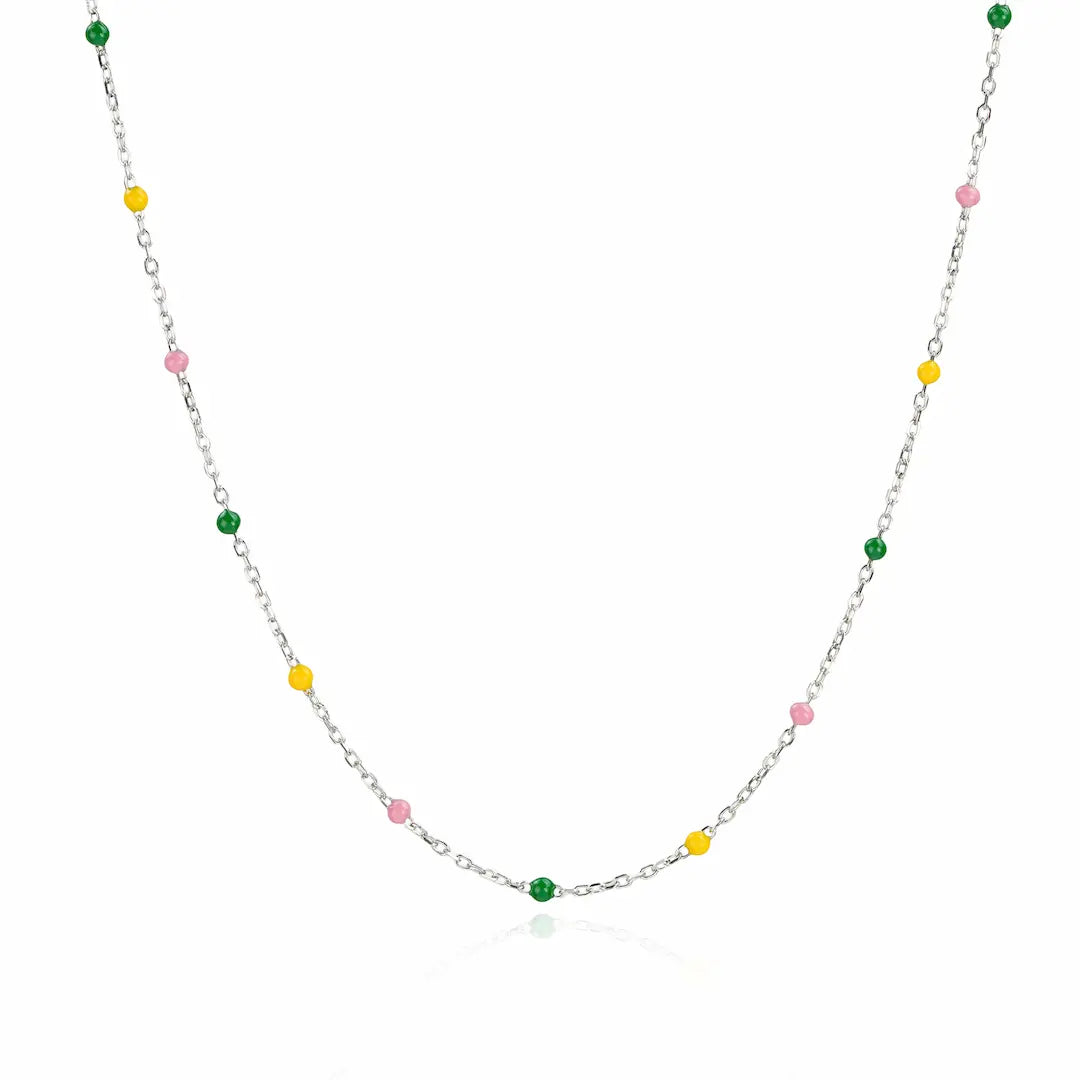 Design: Minimal chain with multicolour enamel bead accents