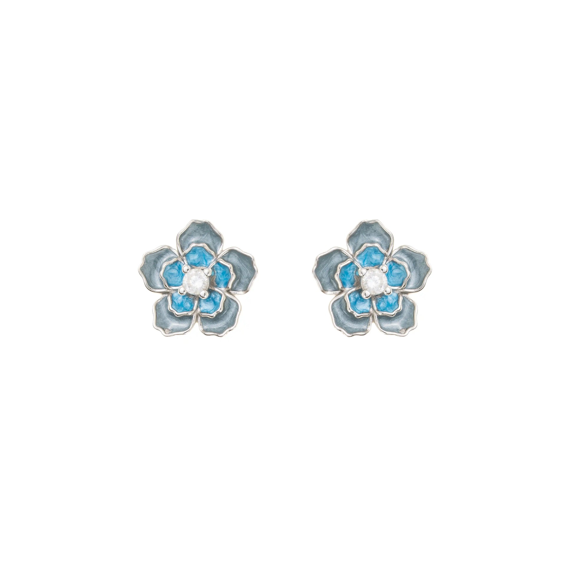 Blue Blossom Enamel Stud - 925 Silver