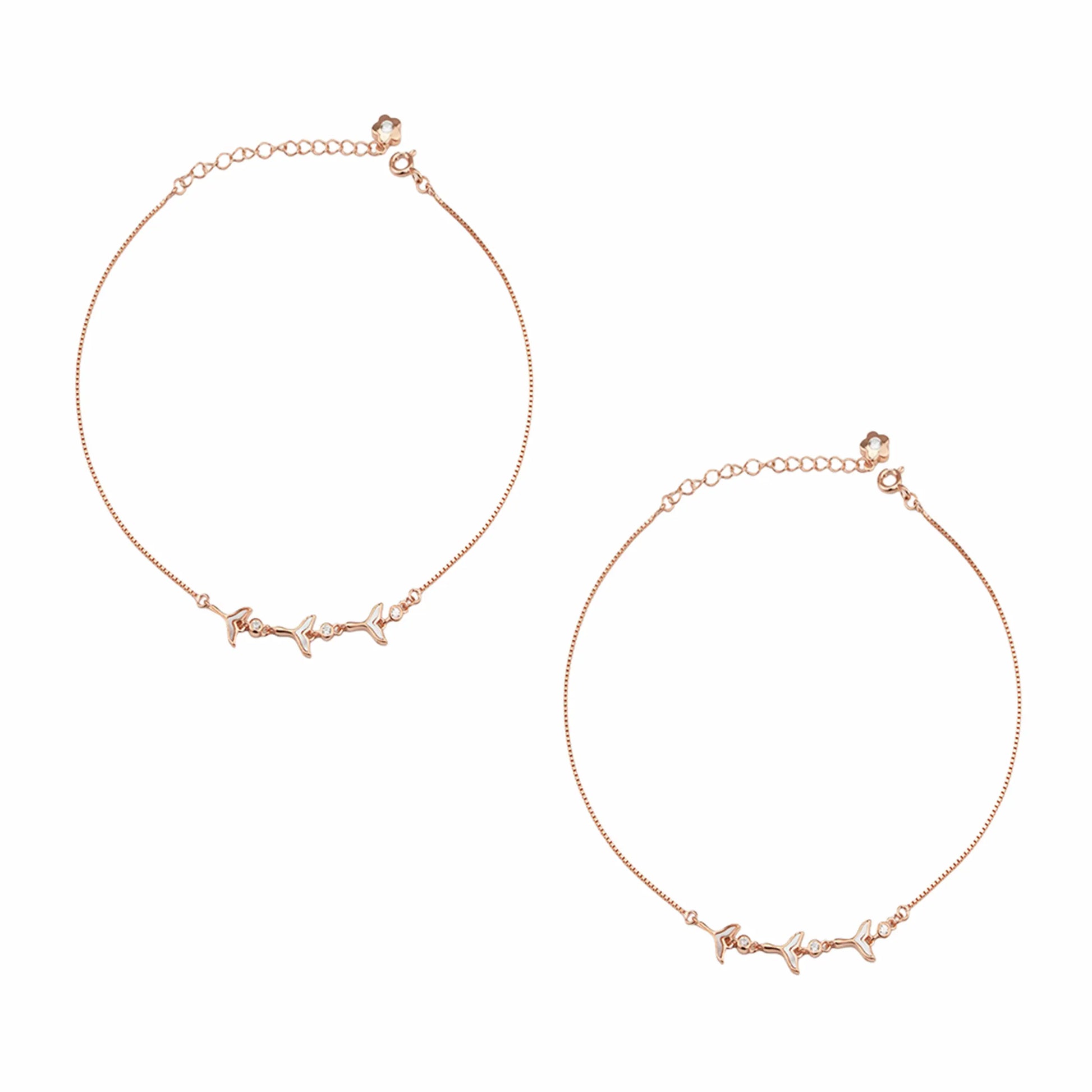 Embrace timeless beauty with our Silver Whispers Anklet, crafted in premium 925 sterling silver with a delicate rose-gold finish.
