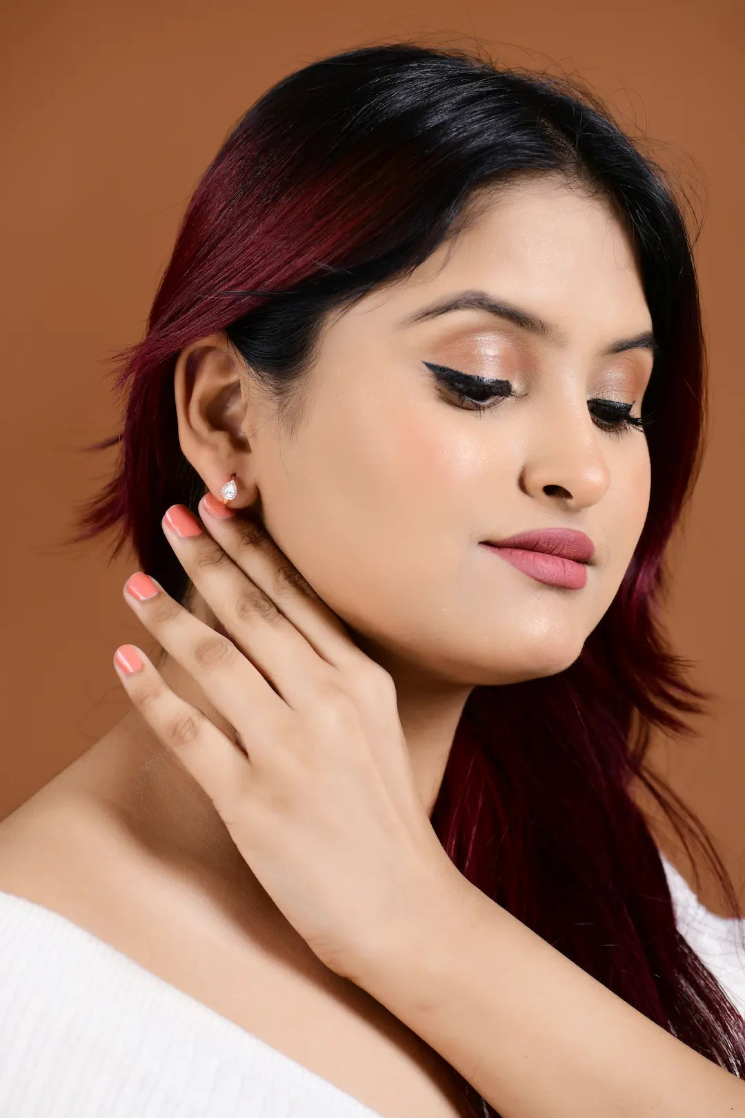 Elevate your everyday elegance with our Celeste Droplet Hoops – a stunning fusion of modern minimalism and timeless sparkle. Crafted in premium rose gold-plated 925 sterling silver, these delicate huggie hoops are adorned with a striking pear-shaped cubic zirconia centerpiece, surrounded by a halo of brilliant micro-set stones that catch the light from every angle. The teardrop silhouette exudes refined femininity, while the secure hinge clasp ensures comfort and ease of wear for day-to-night transitions.