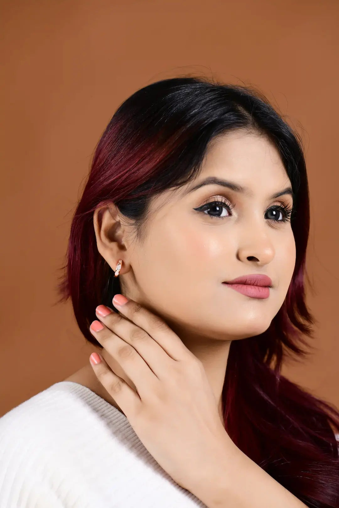 Add a touch of celestial elegance to your everyday style with our Celeste Rose Gold Huggie Hoops. Crafted in a warm, luminous rose gold finish, these hoops feature delicately inset diamond-accent clusters arranged in a graceful quatrefoil pattern, creating a subtle sparkle with every turn. Designed for both comfort and sophistication, their sleek, rounded profile hugs the earlobe closely, making them perfect for stacking or wearing solo.
