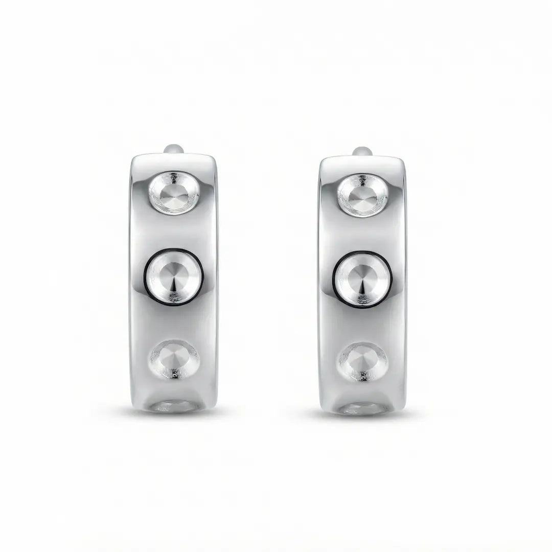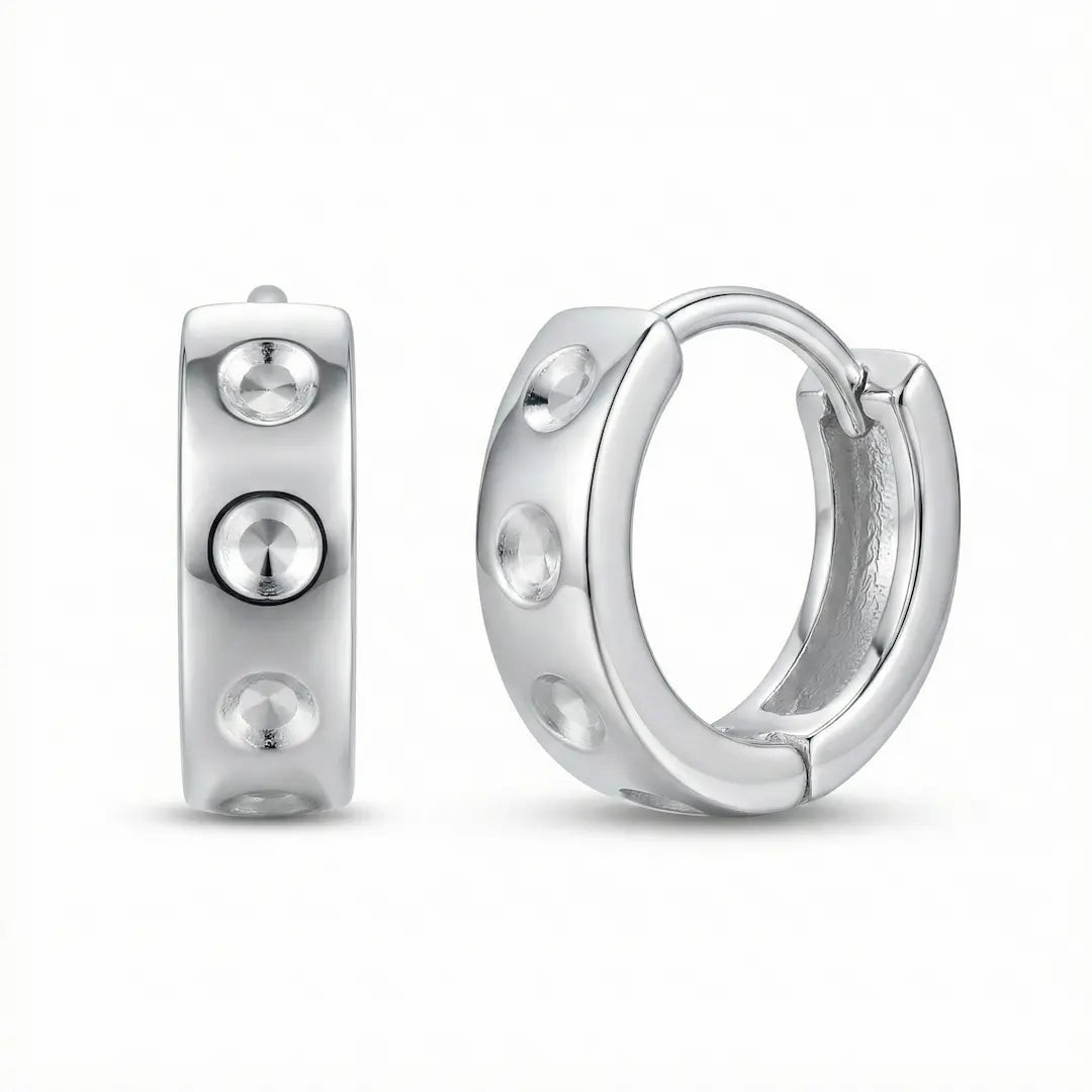 Sleek and contemporary, the Celeste Studded Hoops are crafted in 925 sterling silver with a smooth high-polish finish and modern stud detailing. Designed with a secure hinged closure, these earrings offer effortless elegance for everyday luxury styling.