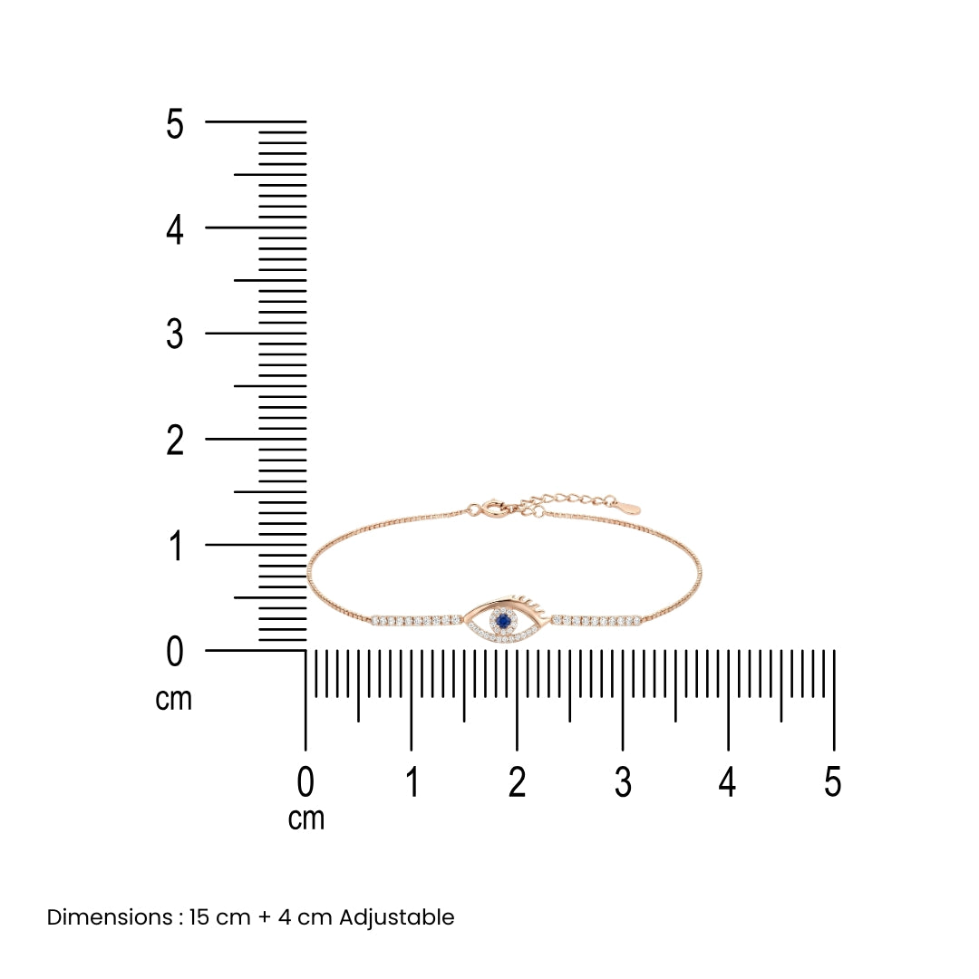 This exquisite Celestial Evil Eye Bracelet is a captivating blend of elegance and symbolism. Crafted from high-quality silver and finished with a luxurious rose gold plating, the bracelet exudes a sophisticated charm. The bracelet features a delicate chain adorned with a central evil eye motif, a powerful symbol of protection and warding off negative energy. The evil eye is intricately designed with a blue center surrounded by a halo of sparkling white stones, resembling a celestial body. The bracelet is secured with a lobster clasp, ensuring a comfortable and secure fit.