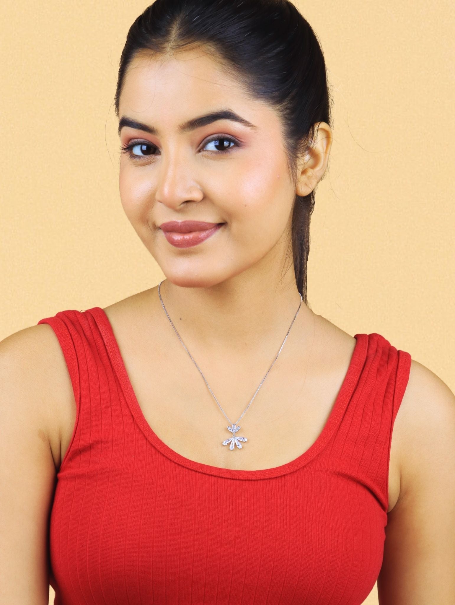 Crystal Bloom Fan Pendant Necklace - 925 Silver