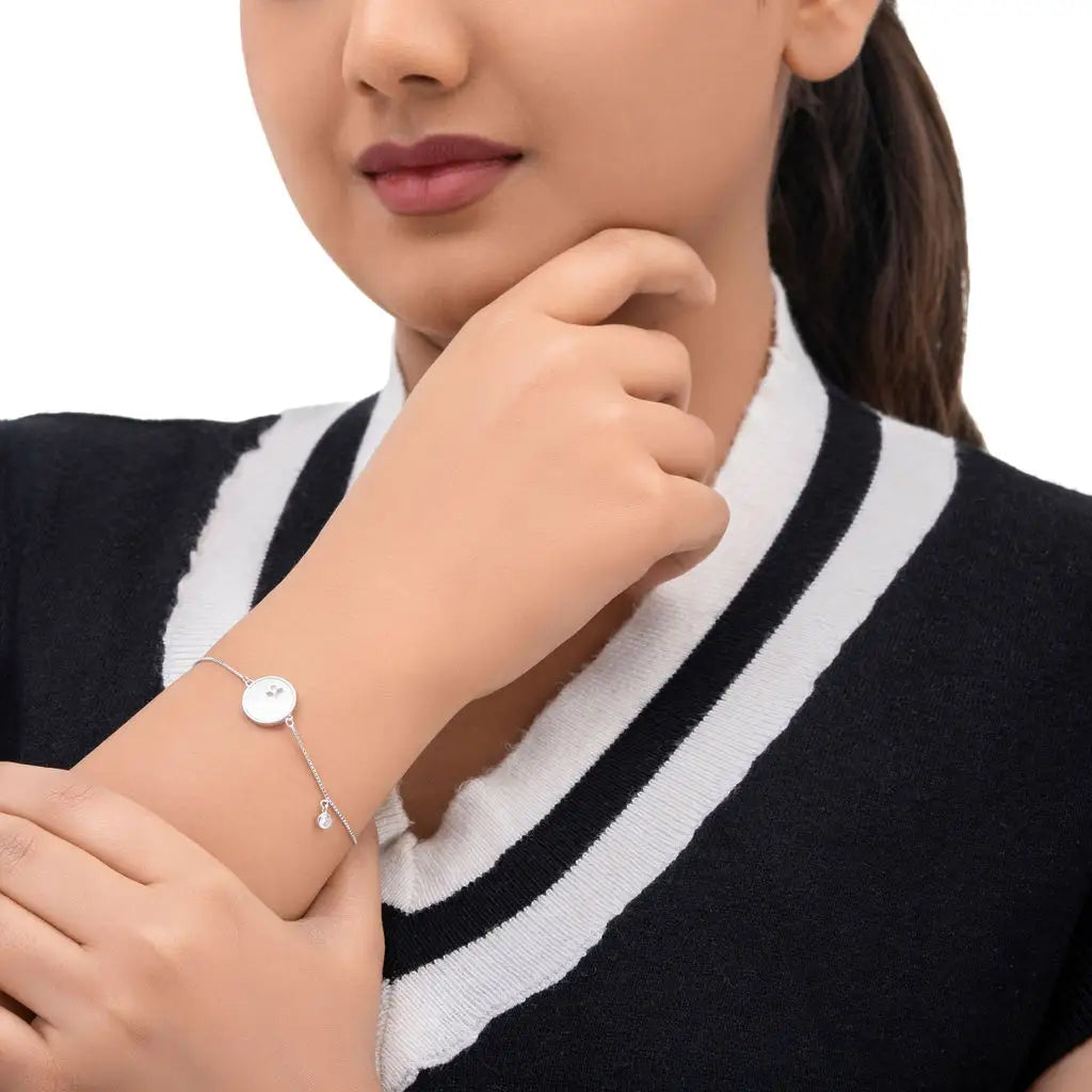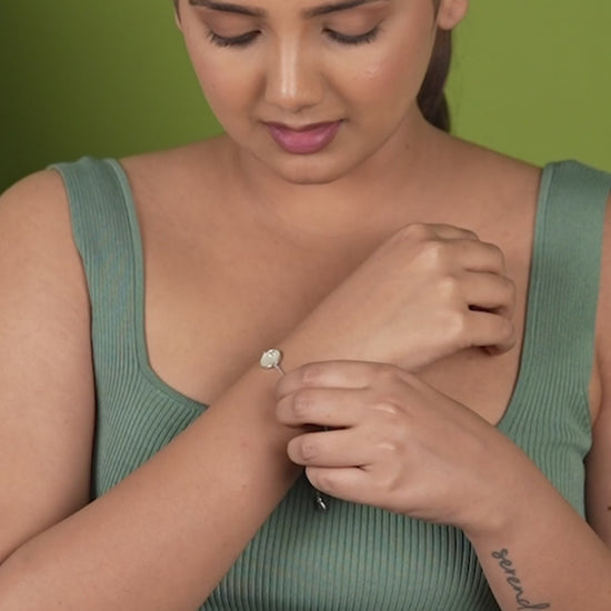 Radiate brilliance with the Stellar Halo Mangalsutra, a dazzling fusion of tradition and modern elegance. Crafted in fine sterling silver, this necklace features a classic arrangement of black beads along the chain, a symbol of sacred protection, and a breathtaking circular pendant at the center. Encrusted with a halo of sparkling white stones, the pendant captures and reflects light like a star in motion. Bold yet graceful, it's a stunning statement of everlasting love and divine connection.