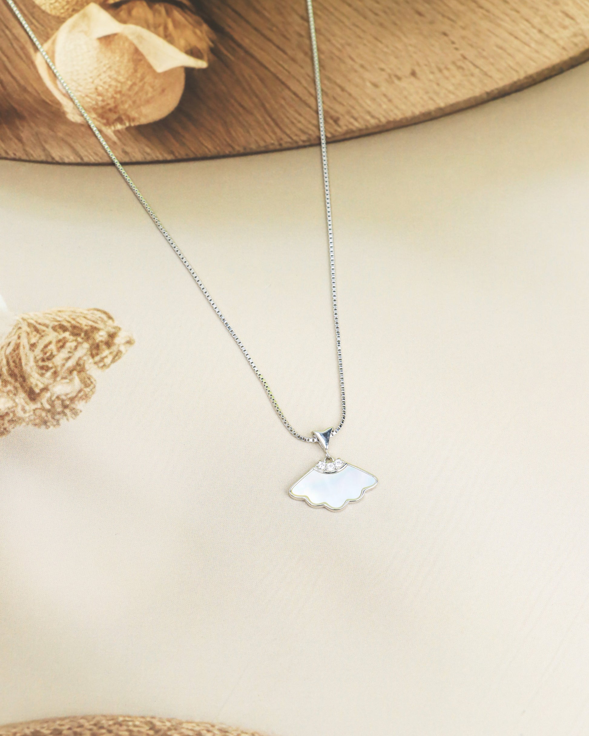 Elegant Fan Pendant Silver Necklace - 925 Silver
