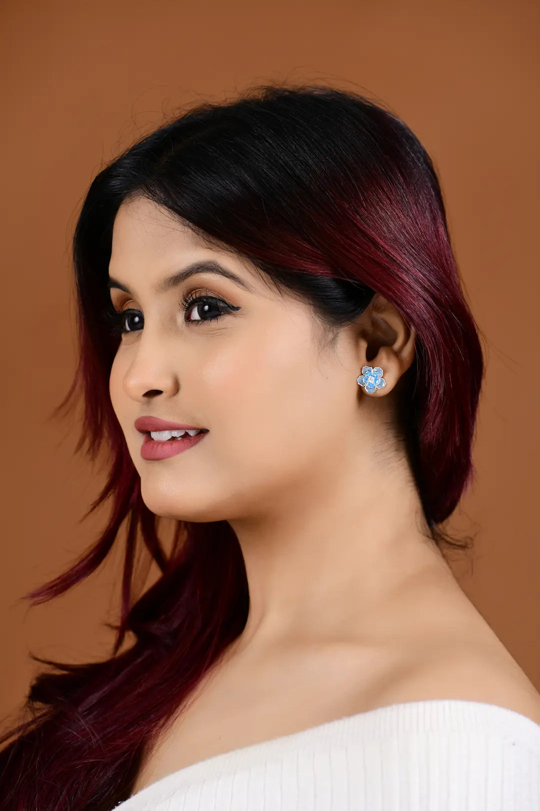 The elegance and charm to your look with our FloraGlow 925 Silver Adjustable Stud EarringsBlue Blossom Enamel Stud Earrings. Expertly crafted in a delicate floral design, these earrings feature layers of soft blue and turquoise enamel petals edged in silver-tone metal for a stunning contrast. A sparkling central crystal adds a hint of shimmer, making them perfect for both casual and formal occasions. Lightweight and comfortable, these studs are a timeless accessory that brings beauty and sophistication to any outfit.