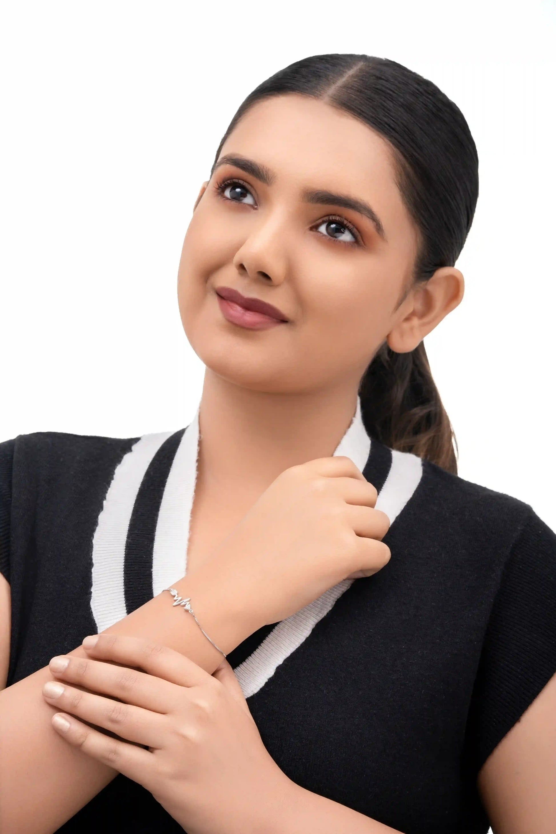 Radiate brilliance with the Stellar Halo Mangalsutra, a dazzling fusion of tradition and modern elegance. Crafted in fine sterling silver, this necklace features a classic arrangement of black beads along the chain, a symbol of sacred protection, and a breathtaking circular pendant at the center. Encrusted with a halo of sparkling white stones, the pendant captures and reflects light like a star in motion. Bold yet graceful, it's a stunning statement of everlasting love and divine connection.