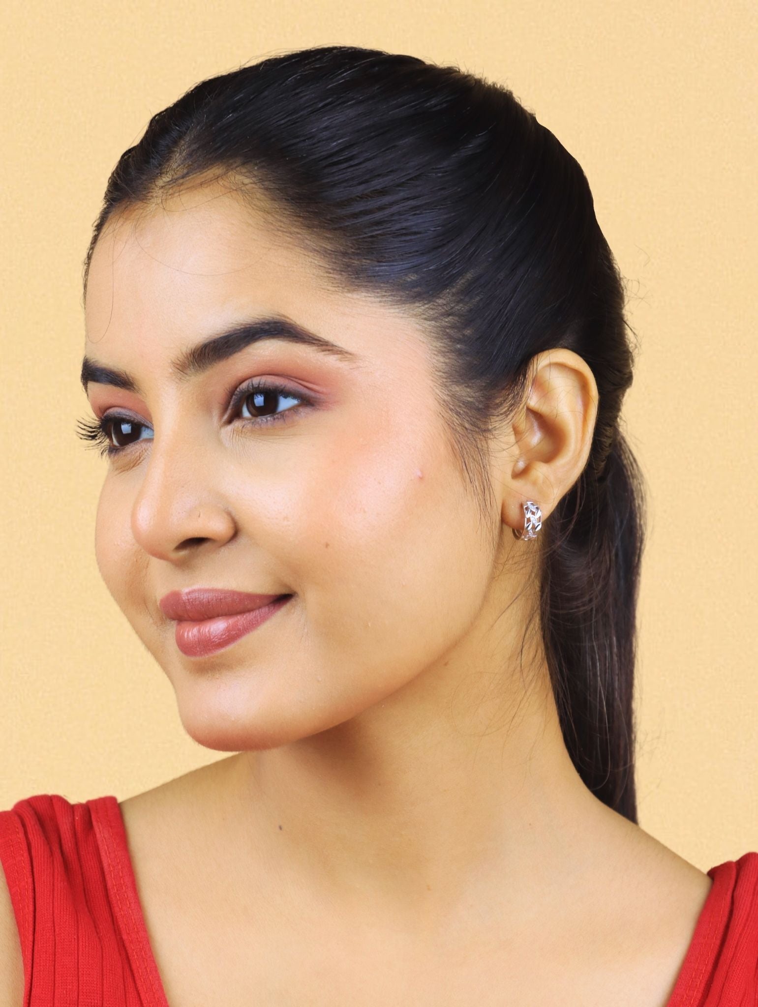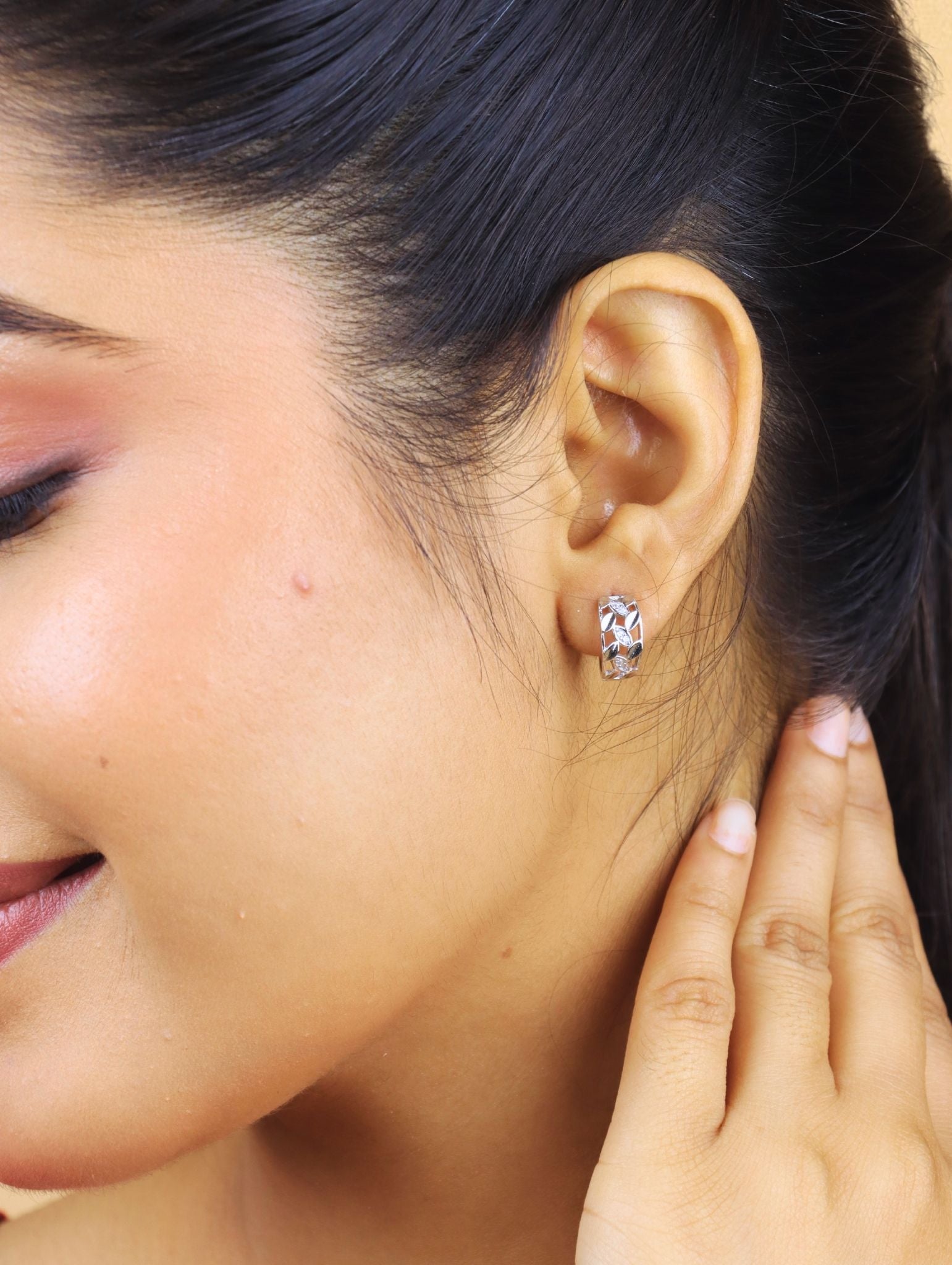 Step into refined sophistication with the Luna Vine Silver Hoops, a striking fusion of nature-inspired design and timeless elegance. These radiant silver-plated hoops showcase a delicate vine motif, intricately crafted with alternating polished leaves and shimmering marquise-cut cubic zirconia stones that resemble dewdrops along a branch. The open latticework gives these earrings a light, airy feel, while the gleaming finish adds a modern touch of luxury.