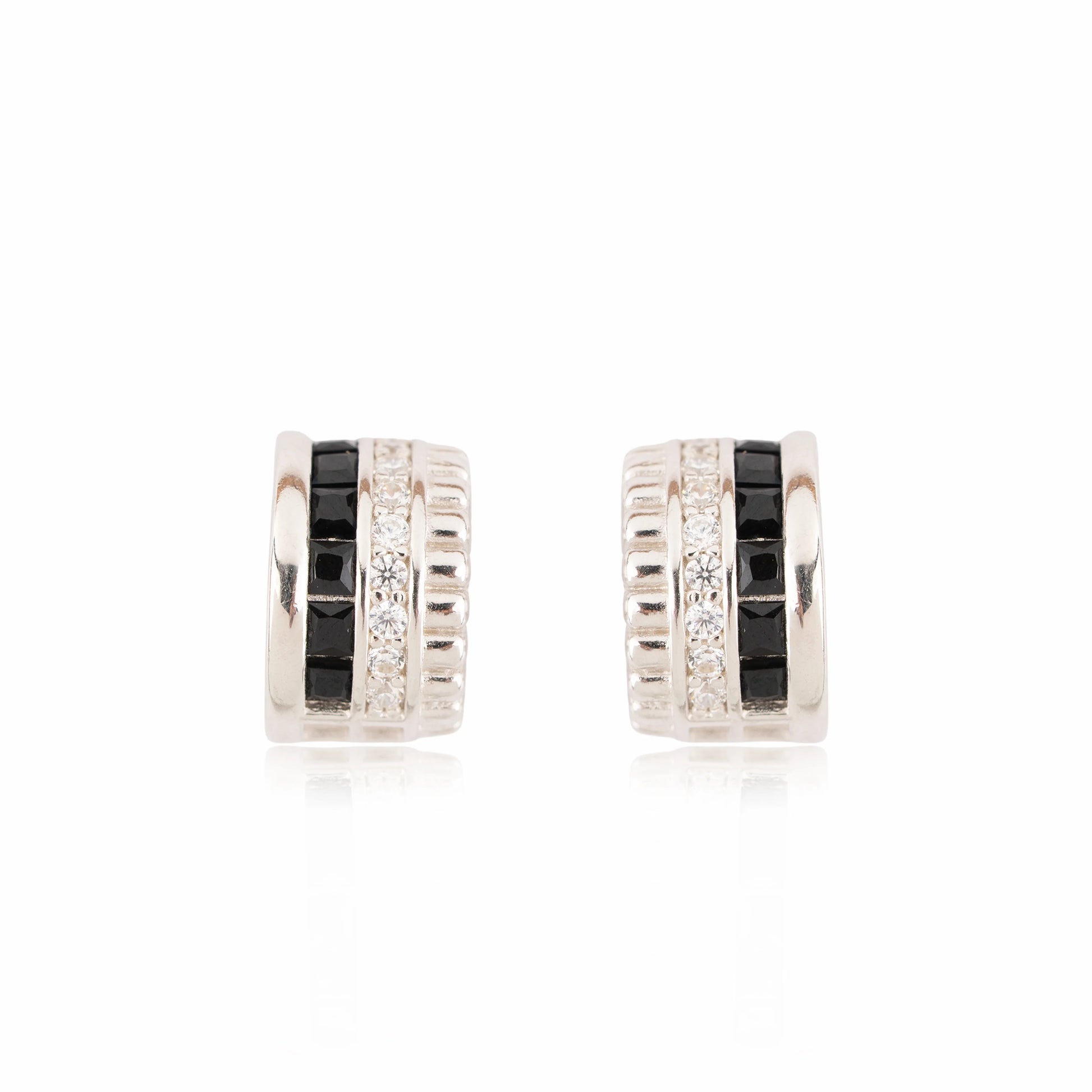 Meet Noirora, a bold yet elegant pair of huggie-style earrings crafted in premium 925 silver earrings. Designed with striking black stones contrasted by shimmering crystals, these earrings offer a modern twist to classic silver earrings for women. Their sleek, versatile style pairs perfectly with both minimalist and statement looks. Whether you love earrings for women in silver, sterling silver earrings, or prefer mixing with rose gold earrings for women, the Noirora design fits every wardrobe.