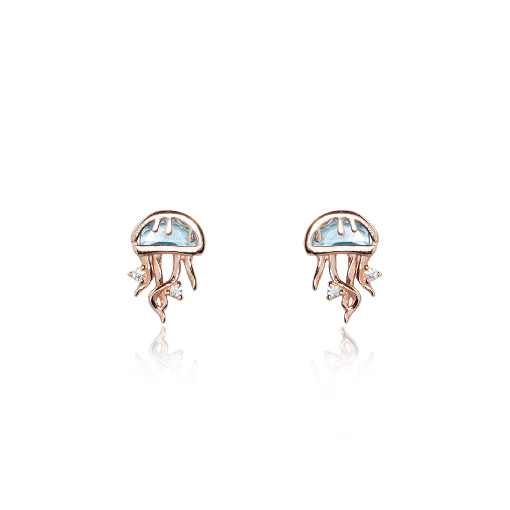 Featuring a unique jellyfish-inspired design, these earrings showcase sea-blue enamel detailing and sparkling cubic zirconia drops for oceanic charm.