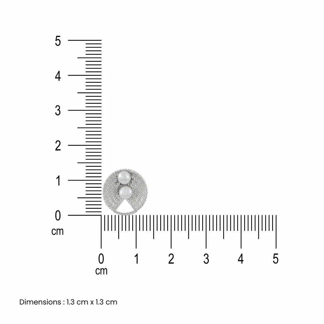 These elegant Pearl Earrings are a testament to modern sophistication. Crafted from high-quality silver and finished with a luxurious rhodium plating, these earrings exude a timeless charm. The earrings feature a unique circular design, with a delicate meshwork pattern surrounding two freshwater pearls. The pearls are perfectly round and lustrous, adding a touch of elegance and sophistication.
