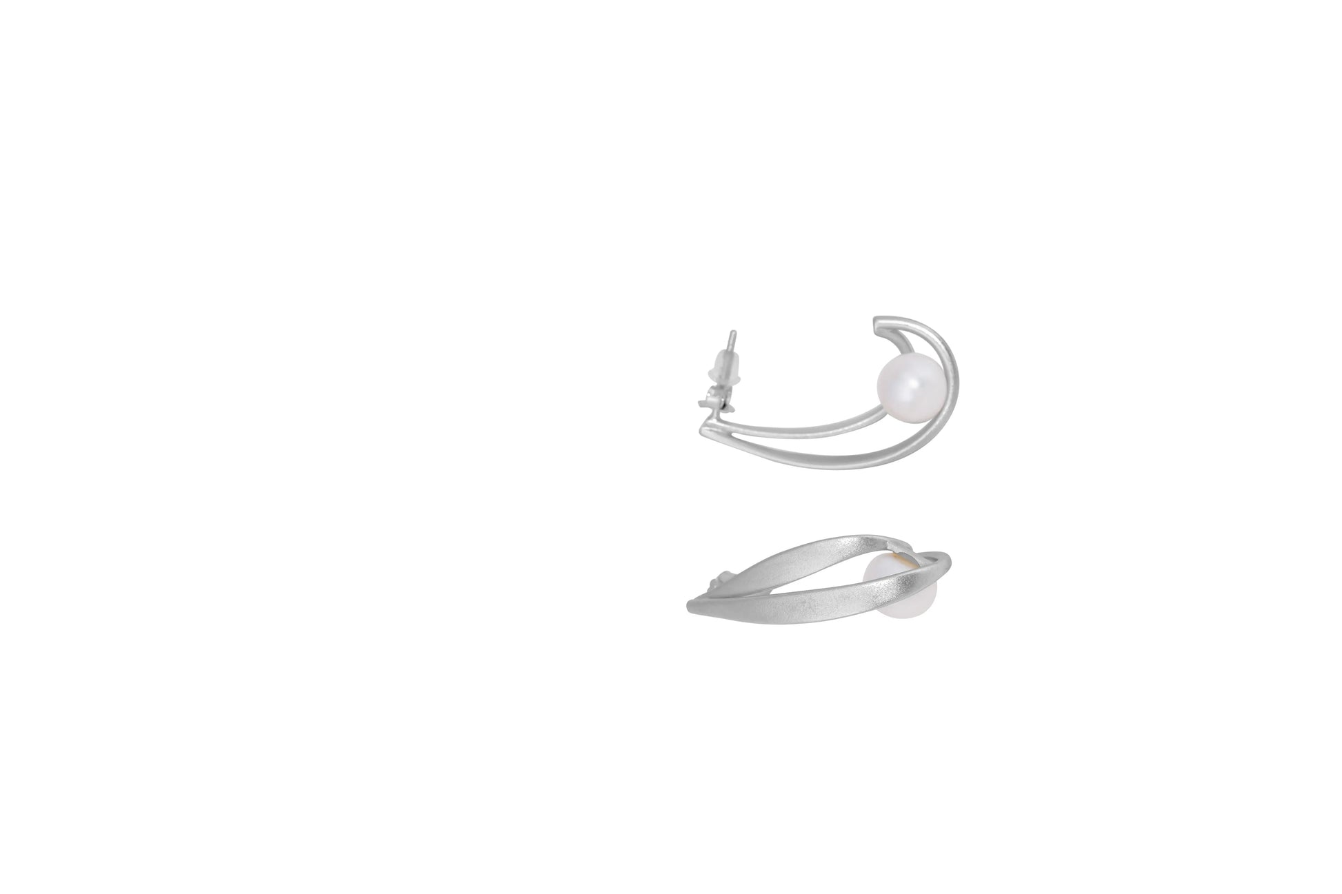Matte Finish Plain Silver Water Pearl Earrings - 925 SIlver