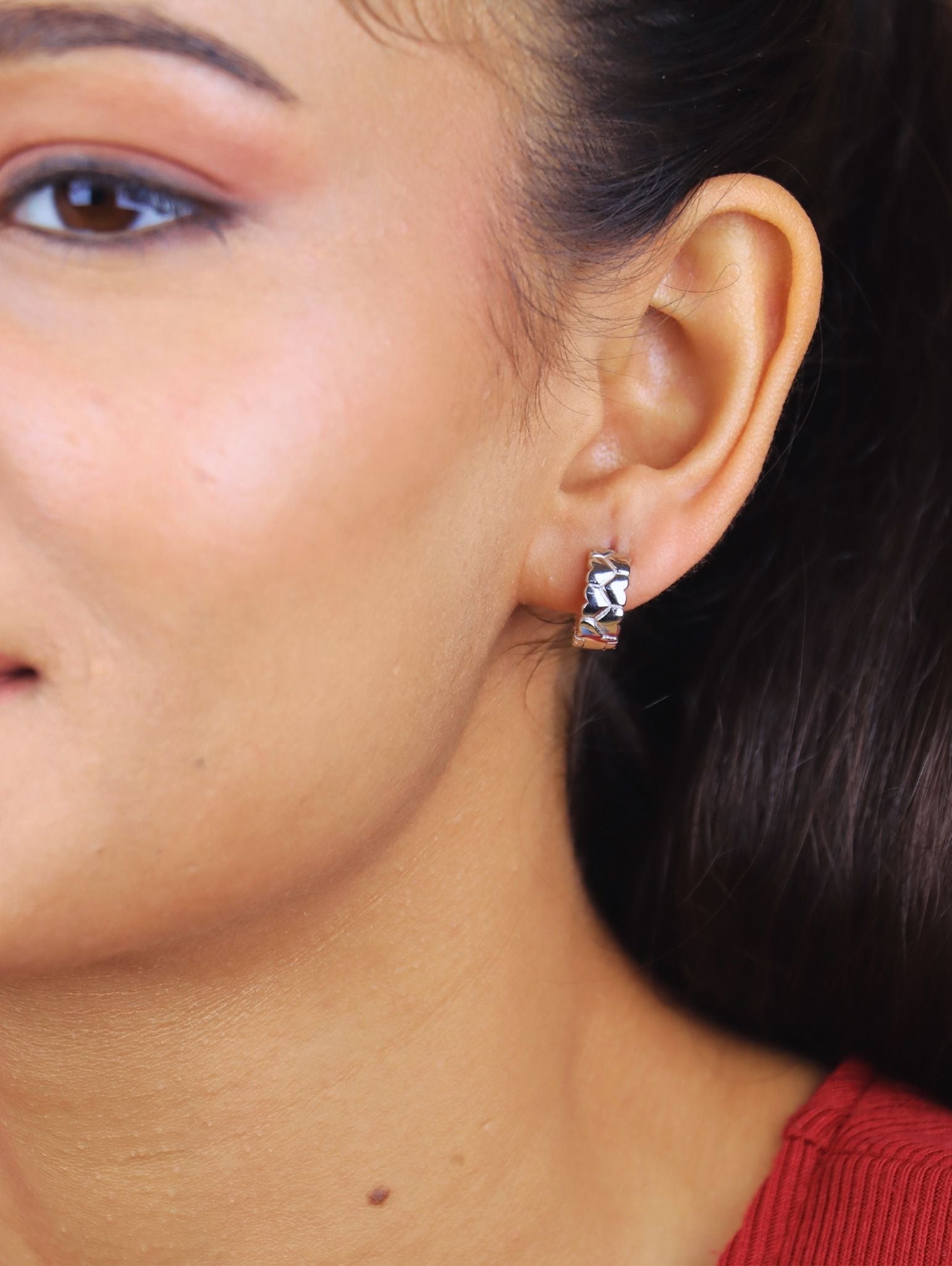Elevate your everyday elegance with the Silver Weave Huggies, where modern minimalism meets timeless design. These finely crafted 925 sterling silver hoop earrings feature a distinctive woven pattern that mimics the look of a stylish braid, creating a textured surface that catches the light beautifully from every angle. Designed for both comfort and sophistication, these huggie hoops hug the earlobe with a snug fit, making them ideal for both casual wear and more polished ensembles. The high-polish finish enhances the sculptural pattern, adding a subtle yet striking edge to your jewelry collection.